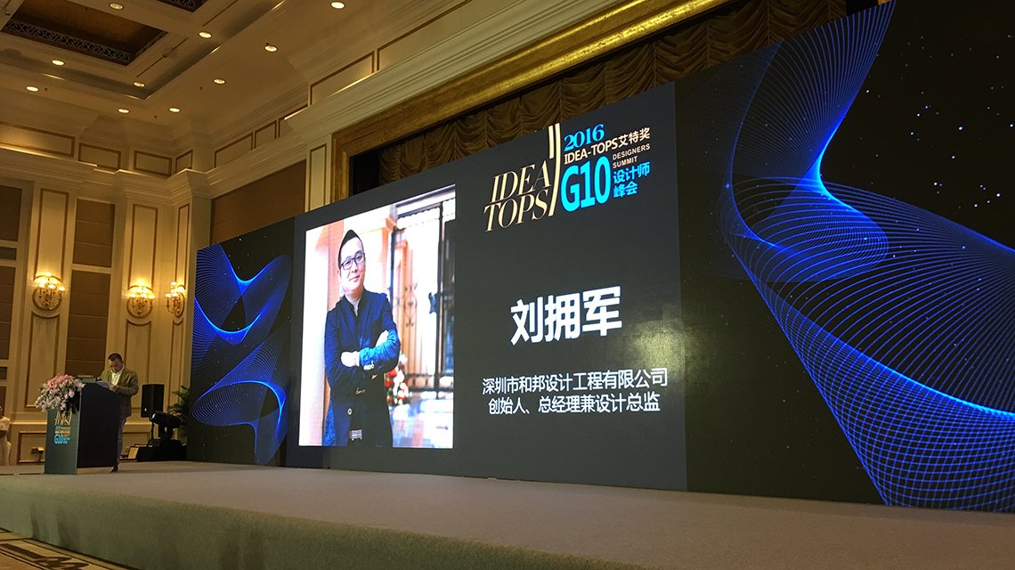 2016年國(guó)際空間設(shè)計(jì)大獎(jiǎng)——艾特獎(jiǎng)!G10設(shè)計(jì)峰會(huì)上,鑒于和邦裝飾劉擁軍先生在室內(nèi)設(shè)計(jì)領(lǐng)域的突出表現(xiàn)和卓越成就,應(yīng)邀參加了G10設(shè)計(jì)峰會(huì)圓桌會(huì)議,對(duì)【未來中國(guó)的室內(nèi)設(shè)計(jì)方向探討】作了方向性的報(bào)告,得到了中外設(shè)計(jì)師從業(yè)者的高度贊揚(yáng)。